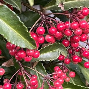 大好きなクリスマスホーリー🎄🔴 期待に応えてくれて、12月❣️ クリスマスモード全開♥️ 🟢色だった実が真っ赤に大きく膨らみ、 お庭の一角が、ワクワクでいっぱいに なりました🔴♥️ 🏷真っ赤な火曜日