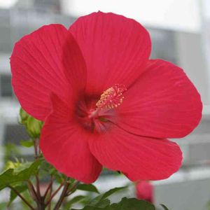 今日も眩しい日射しで溶けそう💧 フウリンブッソウゲ(コーラル・ハイビスカス)。 ユラユラ風に吹かれてます。 近くにつぼみもあるので楽しみ✨