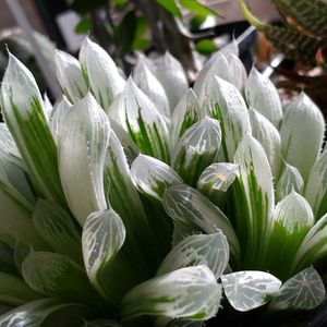 ハオルチア(白水晶) 葉が伸びてぎゅうぎゅうだけど🤍すりガラスみたいです💖 糊斑に参加して良いかしら? 🏷️2のつく日は斑入りの日 🏷️毎月26.27日は糊斑の日