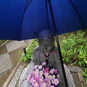 花地蔵に傘☂を……笠地蔵😓🙏 山田くん、とりさんの座布団とりなさい‼️