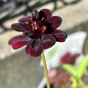 冬越ししたお花達🥰 ①去年の秋にお迎えしたチョコレートコスモスが初めて咲きました♪ ②紅葉葉ゼラニウム🍁 花数は少ないですが、毎年咲いてくれます。 ③昨年はお花が咲かなかった、 ほったらかしの羽衣ジャスミン。 今年こそは植替えてあげようね😅 おまけ 今日は端午の節句🎏 @ご近所散歩にて