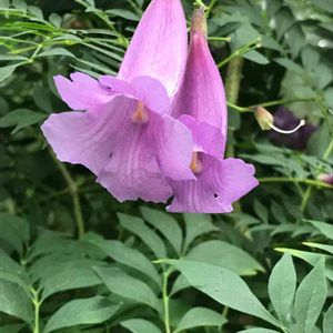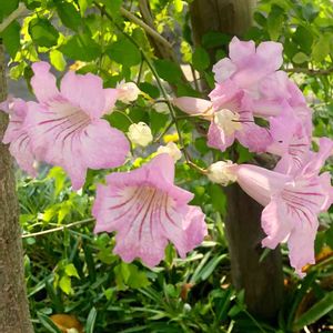 歩道の植え込みのツツジの中からひょっこりピンクノウゼンカズラ。うちにもとんで来てほしいな〜。 ノウゼンカズラにそっくりですが、ノウゼンカズラ属ではなくてポドラネア属なのだとか。なので正式名はポドラネア リカソリアナ、舌噛みそうですね(・_・;
