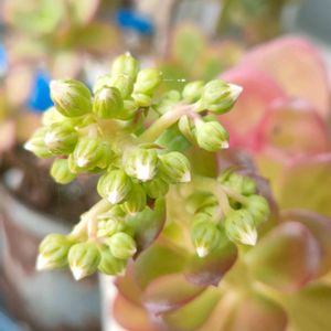 初めての アエオさんの花 3月の終わりに発見! 咲くと枯れるとか言われてますが 一度咲かせて観たかった 可愛い〜💖 咲いたのをカットし台所で毎日眺めてます