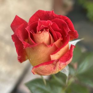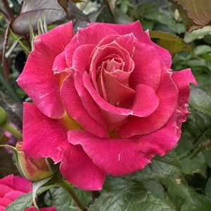 ピュールさん、開花しました♪ 覆輪の入る、色味も形も新奇性のあるバラさんです🌹 目を惹きますね。