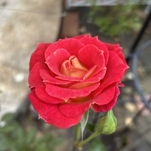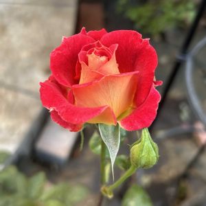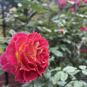 新たに迎えた薔薇ピュール🌹 耐暑性、耐病性が強く花保ちも抜群との事で花友さんオススメの薔薇で、あやせローズガーデン(11/2)で那須ヒロガーデン出張販売の時に花友さんが選んでくれた薔薇です🌹 蕾が沢山あり、充実した枝が複数あり立派な大苗です🪴 ぱっと見た目、色合いが聖火に似てますが、花弁の形と外弁は薄いクリーム色の複色で素敵な薔薇です🥰 赤いエリアに並べて見ました🪴