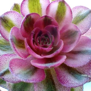 アエオニウムの傾城ちゃん(๑•᎑•๑)🩷🤍💚 まだ小さい子ですが、既に美しい色をしてくれています✨ 夏はどんな色合いになるんだろう(´•ω• ก`)?? 楽しみです🎶