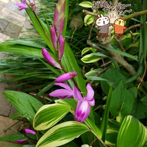 今日のお花シラン🩷🌿 昨日のお花スイレン🩷💚の共演 5月5日🤳 せせらぎ公園古民家にて