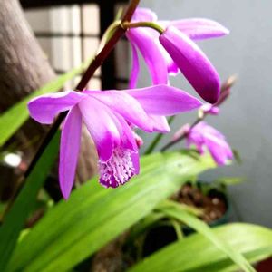 学校に置かれた『シラン』 きれいな紫で小ぶりな花がとっても素敵です(*´ー`*)