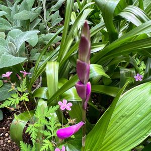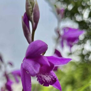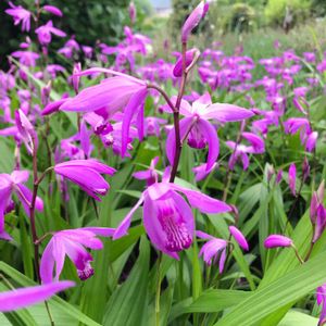 シラン(紫蘭)が咲きだしました☺ 昨年は少なかったのですが 今年は花茎を3本も折ってしまいましたが 残りは9本💚 お楽しみはこれからです💚 ラグビーボールのような実が楽しみなのです🤎🧡🤎🧡