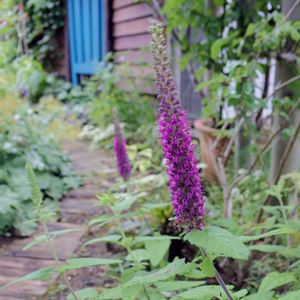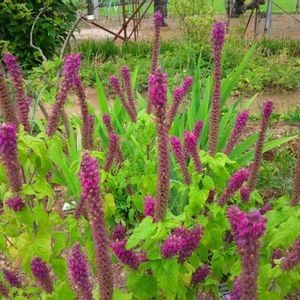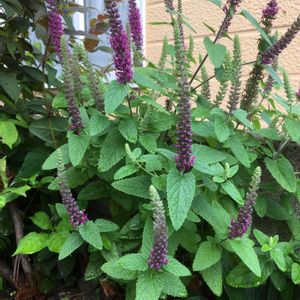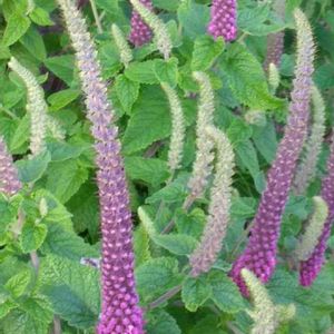 テウクリウムヒルカニカムが綺麗に咲き出しました 紫の花穂と濃い緑の葉がとても美しいです。