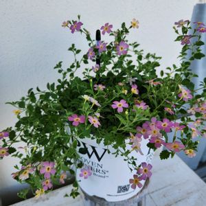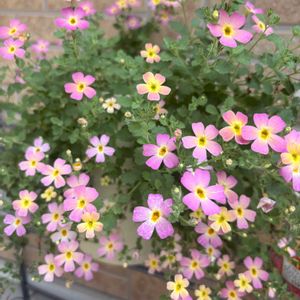 台風一過…被害が出てしまった地域があり心を痛めています ジャメスブリテニアサファリ「ピーチサンセット」、お花が咲き続けています。サルビアミラージュに日を当てるようにしていたらピンクの発色が良くなく黄色が強く出る感じに…これはこれでかわいいけど、よく日に当たる方向に戻したらピンクが出るようになってきました。 育て方の情報がほとんど見つけられなかったため今季の反省として気になっていることをメモしておきます。冬越しさせるかリセットして新しい株を一株植えで育てるべきか悩ましいなあ ・強健。タグは育て方として午前中からの1日6時間の日照を推奨していたが午前中の日あたりが期待できなくてもほぼ問題ない。 ・暑さには超強く水切れの心配はゼロ(真夏の園芸店の見切り品コーナーで土がカラカラでも株は枯れる気配なし)。真夏は半日陰?何の話かな?花数も少し減ったかな?程度 ・早い段階から摘心して枝数を増やし株姿を整えればよかった。放置すると暴れぎみで近くの枝と絡まりがち ・茎がとにかくじょうぶ。折れても外れにくく傷めず手で折り取ることは難しく作業にはハサミ必須 ・お花は終わると自然に落ちるタイプ。ただ白いめしべ?がガクと残って主張してくる💦手でガクを取り除くと今度は残った長めの花茎が(痛くはないが)柑橘のトゲのように突き出てきれいじゃない。 ・花は茎から出た葉1枚に一輪咲き、終わると同じ場所から新たな葉が出てくる(出ないパターンもある) ・切り戻しても株元に近い枝からはあまり新芽が出てこず株元ハゲは防げないっぽい