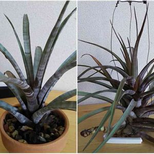 我が家のチランジアの女王様、チランジア・ヒルダエです😃。 最大80㎝程になるチランジアなので、まだまだ子株サイズです。 開花しないように願いながら、上手く育てていきたいです😊。 チランジアでは珍しい、葉に縞模様があり、草姿も美しいと思うので、機会があれば育ててみることをお奨めします🎵。