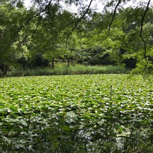 近くの公園のハス池です 花はほぼ終わりで、葉っぱがいっぱい となりにはホタルが飛んでるんですよ 住宅街の中の公園なんですけどね🌟