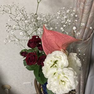 おはようございます お花を生けました トルコキキョウ スプレー薔薇 カスミソウ アンスリューム