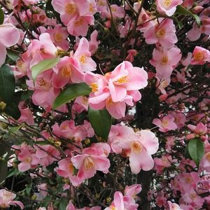 ツバキ 椿 港の曙 枝いっぱいに花をつけて、 甘い香りを漂わせていりる。 香り椿。 ユカリさんの🏷2022早春を彩る花草木 に参加します。