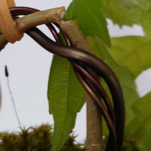 ❤️♡❤️♡曲げたった〜 昨年山影の道端から剥がしてきた苔から生えてきたたぶんヒメコウゾ 新芽が出てきたので 針金でがんじがらめ 一日ごとにイメージが変わった 今年はこれで様子見ですね~