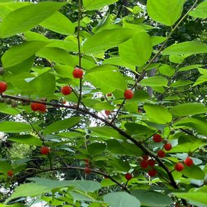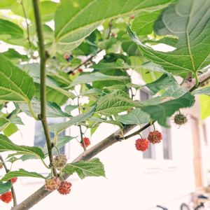 部屋から赤い実が見えて、 あれっ?て思って外出たら、 ヒメコウゾの実が色づいてました。 誰かが植えたわけではなく… 鳥からの贈り物ですが、 こんなに成長しました😊❤️