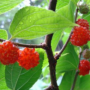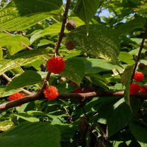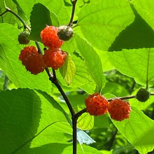 【われら樹木探検隊】! ヒメコウゾ(姫楮)クワ科コウゾ属 試食してみました、桑よりジューシー ざらつきますが、爽やかな甘さでした 落葉低木 雌雄同株 岩手県以南、奄美大島まで 朝鮮半島、中国中南部に分布 低山地の林縁に自生する ヒメコウゾとカジノキの雑種が 紙の原料のコウゾといわれている ヒメコウゾも紙の原料に使われていた