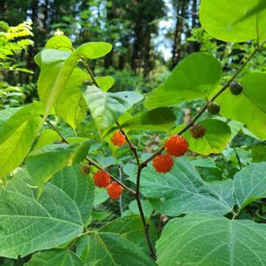 里山を歩いてみれば… ヒメコウゾ(姫楮)の色づき始めた果実がありました☺️