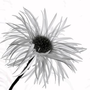 ガーベラをモノクロームで見ると 繊細な花びらが透きとおるよう カラー版で蕊をアップ 中心はココア色 その周りをミルクチョコレートを削ったようなクルクルがたくさん 黄色のロウソクを立てて… 何だかスイーツな感じ ガーベラ見ると いつもスピッツの♪ガーベラ♬ 脳内に流れてきます