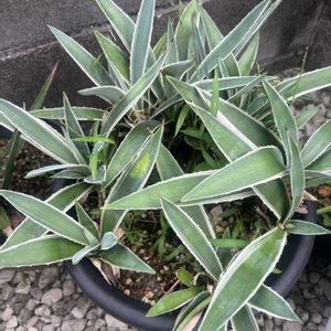 こんばんわ×②です。 久しぶりにkooさんが出没したので🤣便乗させてください🤣🤣🤣 今日はアガベさんの日ですもんね🤗 白閃光さん、白が強くなってきました♪ 今までは縁だけ白だったのに、斑が多めの🌱さんに変身してます(*^^*)💕 このまま綺麗な子になってくれるといいのになっ🎶