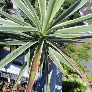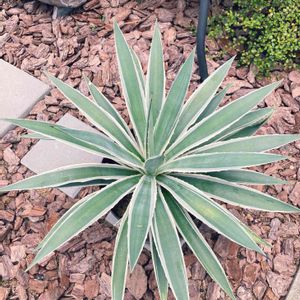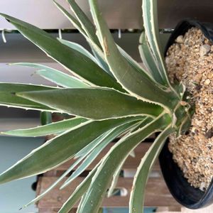 アガベ アングスティフォリア マルギナータ なっがい名前‼️ 和名だと、『白閃光』あら✨良い感じのお名前じゃん🎵 しかし、あまり大きくならないで欲しいのよね😥 屋根付き棚に入らなくなっちゃってたよ😓