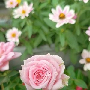 🍀おはようございます🍀 長く咲き続けているミニバラ❣ 雨がかからない場所で 信楽焼のタヌキさんと一緒💕 ②ローダンセマム アフリカンアイズ❣ 寒さで葉っぱ🌿の先が茶色くなりました😊 ③久々の恵みの雨が降り 地植えの薔薇 ジュリアは びっしょり☔ ④ミニバラ ベビーマスケラードも 雨に濡れて寒そう… ⑤屋根がある場所のミニバラを 雨が上がったので出して🤳…
