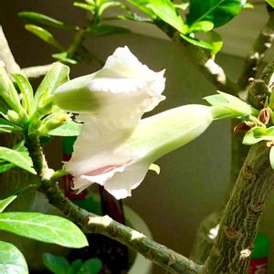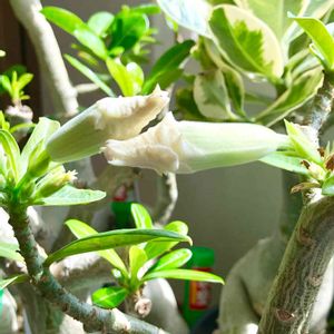 同じ株のラブラブアデニウム カオナンファン、この子は白い🤗 9月1日にpicしたのは、横向きの花。 少しピンク💕