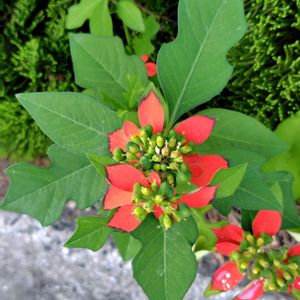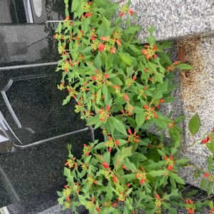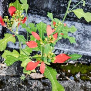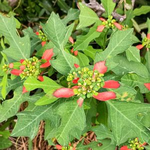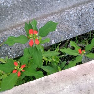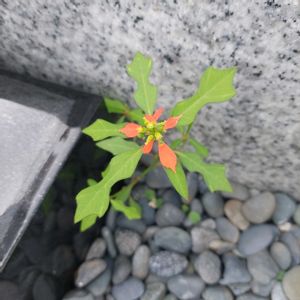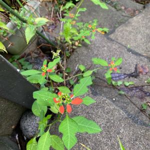 ショウジョウソウ(サマーポインセチア) 初めて実物見ました❣️ ①②数本咲いてるのを見つけ、初めて〜と撮っていたら、その先の道路際にたくさん咲いていた〜③④ ここで増えてる感じ、日本では一年草扱いらしいですが、暖地では冬越しして増えるのですね❣️