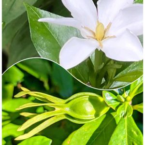 今日のお花 …クチナシ…開花は5月 下の実は今朝の写メ これから赤く色付いてきます…
