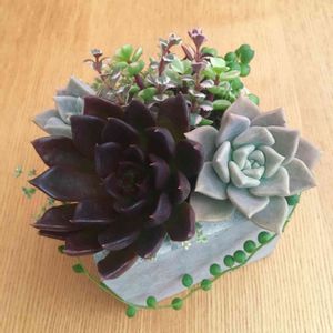 セメントの鉢が好きでして。 こつこつ集めた子たちを寄せ植えました。 むすこが「けっこういいね👍」と言ってくれたので寄せ植え記念日( ˙ᵕ˙ )✨