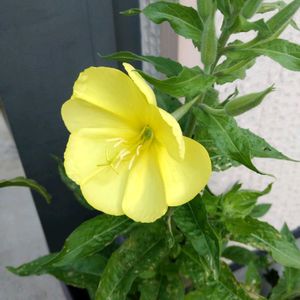 オオマツヨイグサ アカバナ科 宵待ち草の別名があるそうですが、夕方を待って咲くので風情のある呼称である。 私の大好きな花の一つだ。 狭い花壇だが毎年 何処かに実生苗が育ち、穢れの無い黄色の美しい花が見られる。