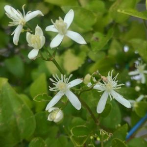 センニンソウ(仙人草) キンポウゲ科 2度の虫害で 疎らにしか花が咲きません😢 7月上旬とお盆頃に青虫がウジャウジャでした。 来年こそ良花を咲かせたいものです🍀