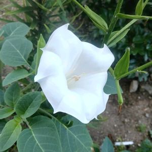 チョウセンアサガオ ナス科 こぼれタネの実生苗が育ち、8月終り頃から開花が始まりました🍀