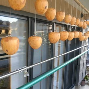干し柿 お馴染みさんから、 『今年は 干し柿作らないの?』 と言われ、物臭になり面倒がっていましたが 腰を上げたところです😆 この辺ではハッチンと呼ばれてる『ひらたねなし』と百目柿 それぞれ 20個を作りました。 経験から 皮剥き後干しますが、翌日まで好天で湿度が低ければ カビの心配はありません。