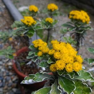 イソギク ( キク科 ) 12月に入り、朝晩冷え込むようになっています。 鉢植えされたまま、枯れない程度に水だけ与えられてきました。 それなのに 小さな可愛い花が咲いて、パチリを待っていました🍀