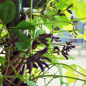 センニンソウ (タネ) キンポウゲ科 ? 春に苗木を貰い、初めて育てました。 菊鉢8号に植え、アンドン七段で開花させました🍀 9月上旬に咲きだし、白い可憐な花は見事でした。 やがてタネと思われるものが現れています。