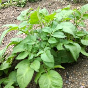 ジャガイモ (品種=男爵) 昨年、花壇の片隅に栽培したところ 思いがけずの 豊作でした。 コメ 野菜類が高値なので 再びとばかり。 柳の下の ドジョウを狙っています。
