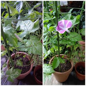 2022/8/10 去年の溢れ種からの朝顔、やっと開花しました! 花芽が少なかったため摘芯して脇芽を伸ばして、出遅れましたが咲いて嬉しい。👍️