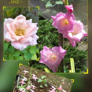 9/5の蕾がこんなに可愛く開きました ミニバラ💗とグラジオラス💗それプラス溢れ種のサルビアコネクシアのピンク💗