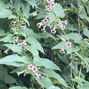 おはようございます ウォーキングで出会った花達 玄関前で咲いていました ハイビスカス とても綺麗な色です サンパチェンス 白とピンクで可愛い💕 月見草 ノブドウ 小さな実をつけていました サルトリイバラの実 これから色づきますね 友達と二人で歩きました 雨は覚悟の上で 最後に降られました 風が吹いて気持ちよかったです