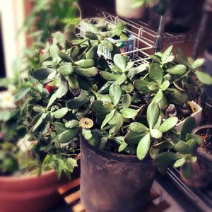 ❤︎金のなる木❤︎ 枯れもしないけど、 今ひとつ変化が分からない🤔 夏の間は水やりしなくても良い? って事になっていますが… 水…与えました🤗 よぉーく見たら… お金💰が咲きました☺️✨ 分かりますか?