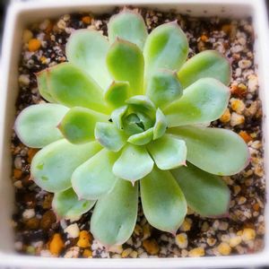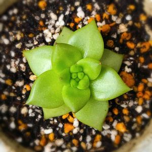 ❤︎桃太郎❤︎ 前回の水やりから二週間です。 真ん中がきゅーーっと なっていて可愛い😍 全体的に大きくなったかも? もう少し水やりは先にします😊