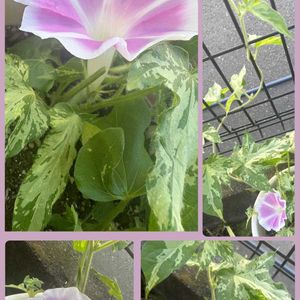 ワァ〜朝顔見っけ👀✨✨✨ 1️⃣斑入り葉で2色植えの苗🌱を5月に植え今日初めて咲きました🤗💞 虫食いだらけになった葉🌿からのこの可憐な花に見惚れちゃいました😍 2️⃣3️⃣ブラックベリーとアジサイコラボ😉♥️💜狭いお庭の空間でハンモック状に育ててるブラックベリーが色付いて収穫したらまたジャム作ろう😋 4️⃣カシワバアジサイと去年6月に来たスーパーサルビア ロックンロールロール トゥルーブルーとのコラボ🤍💙 5️⃣この暑さでチリチリになりつつあるアジサイ🌸この暑さは試練ね🥹 今日も朝から🐶もうだって辛い時期に突入ね🙂↕️エアコン付けて午後から仕事へ🥵 今日も1日皆様にとって素敵な日になります様に🤗💞✨ 🏷️斑入り見っけ隊♪