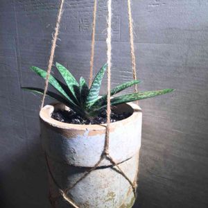 ぢ植えして一気に大きくなった子宝さん、 長雨から救助、 キマる鉢に植えたぜ。 場所確保のため吊り下げ方式採用。