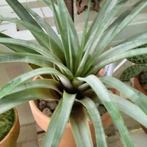 普及種のチランジア・ファシクラータ。 素焼きの鉢に、軽石で植え込んで3年。 徐々に大きくなってきました😃。 直径30㎝を目指して頑張れ👊😆🎵。