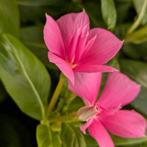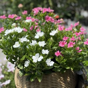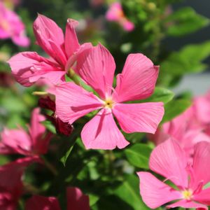 ニチニチソウ・サニープリンセス(学名: Catharanthus roseus 英名: Madagascar periwinkle "Sunny Princess")の花🌸🌿🌸 サニープリンセスは、希少な性質の良い八重咲きのニチニチソウです。 外側の花弁が内側の花弁をまるで姫のように大事に包み込んでいる様子と、まぶしい太陽の下で美しく輝く咲き姿から「サニープリンセス」と名付けられたそうです。 八重咲きニチニチソウ品種特有の葉のシワが少なく、植え付け直後から大きく広がる生育の良さが特徴です。 サニープリンセス ピンクは、鮮やかなピンクの花弁が魅力的で、花つきがよく大きく広がる咲き姿が美しい品種です。 🌸🍃🌺