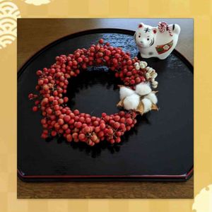 こんにちは。◕‿◕。 寒い日が続いています。 お正月に生けた南天を使ってリースを作りました❤️❤️❤️ 庭で育てた綿をたしました🤍