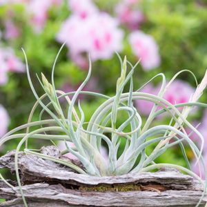 👉エアープランツ チランジア👈 ポコ苗のカプトメデューサエ×プセウドベイレイ 花芽が出てから半年くらいかかっただろうか…🤔 今日花が咲いているのを発見しました🫡‼️ 他の株にも花芽がついてきているので、また半年後に会いましょう😎ってことですね🥹💦 背景は庭のツツジです🌺