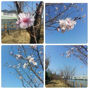 アーコレード (桜)🌸 イギリスで、ベニヤマザクラとコヒガンザクラを交配して作られた品種。 花は大輪、半八重咲きで薄紅色。 日本では、四月と十月の二季咲きとなる。 花は少なかったけど、この時期に桜が見られるなんて、得した気分です💕🎶